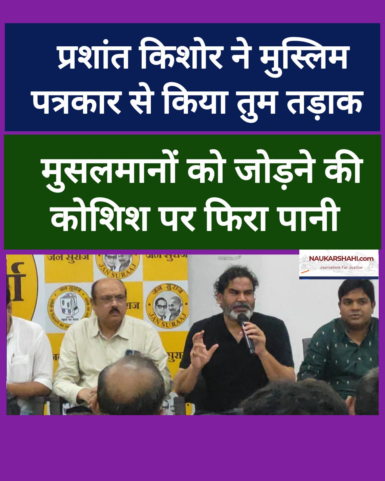 प्रशांत किशोर अकसर अपनी बैठकों में मुसलमानों को लताड़ लगाते हैं. अपमानित करते हैं. और यही उनका घमंड उन्हें मुसलमानों से दूर करता जा रहा है. आखिर मुसलमानों ने देख लिया है कि 2024 में बेलागंज, इमामगंज समेत तीन विधानसभाओं के उपचुनाव में मुसलमानों का वोट तो जनसुराज ने ले लिया लेकिन खुद पीके के स्वजातीय ब्रह्मनों ने उन्हें वोट नहीं दिया.और तीनों सीटों से एनडीए जीत गया ऐसे में मुसलमान यह समझ चुके हैं कि पीके किसे जिताने का वैचारिक ठेका लिये बैठे हैं.